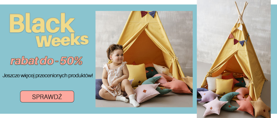 Wraz z pojawieniem się nowego członka rodziny pojawia się także kwestia urządzenia pokoiku dziecięcego. Pokój dla dziecka wcale nie musi być infantylny, aby tworzył możliwości do zabawy, relaksu i z czasem do nauki. Wystarczy dobrać do niego odpowiednie akcesoria, które będą nie tylko estetyczne, ale i praktyczne. Oprócz namiotów tipi polecamy też uniwersalne maty do zabawy, które z pewnością przydadzą się każdemu dziecku podczas codziennych zabaw. Dekoracyjna poduszka z miękkiego, eleganckiego aksamitu w bajkowym kształcie to zdecydowanie ,,must have’’ każdego pokoiku dziecięcego. Aranżacja pokoju dziecięcego nabierze jeszcze bardziej przytulnego charakteru dzięki kolorowym pomponom, girlandom czy łapaczom snów. Ściany ozdobią również drewniane półki w kształcie chmurek, domków bądź namiotów tipi. Polecamy także nasze designerskie abażury i lampki nocne. Kolorowe kosze na zabawki ułatwią zaś uporządkowanie dziecięcej przestrzeni i pomogą nauczyć dziecko dbać o porządek. Sprawdź też nasze narzuty na łóżko.